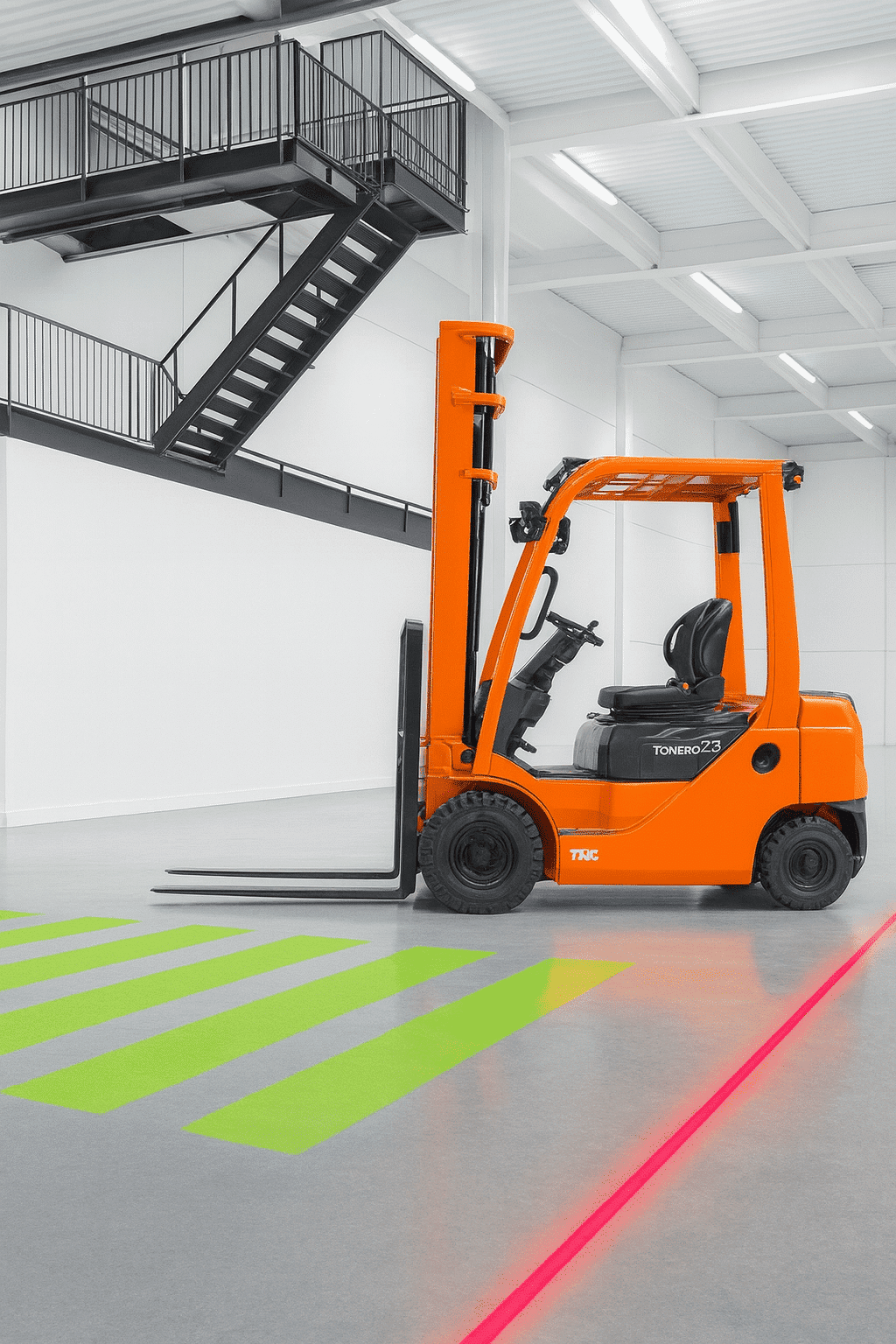 Previene accidentes y mejora la visibilidad con proyectores LED y láser de alta intensidad. La señalización más eficaz y duradera para entornos industriales y logísticos.